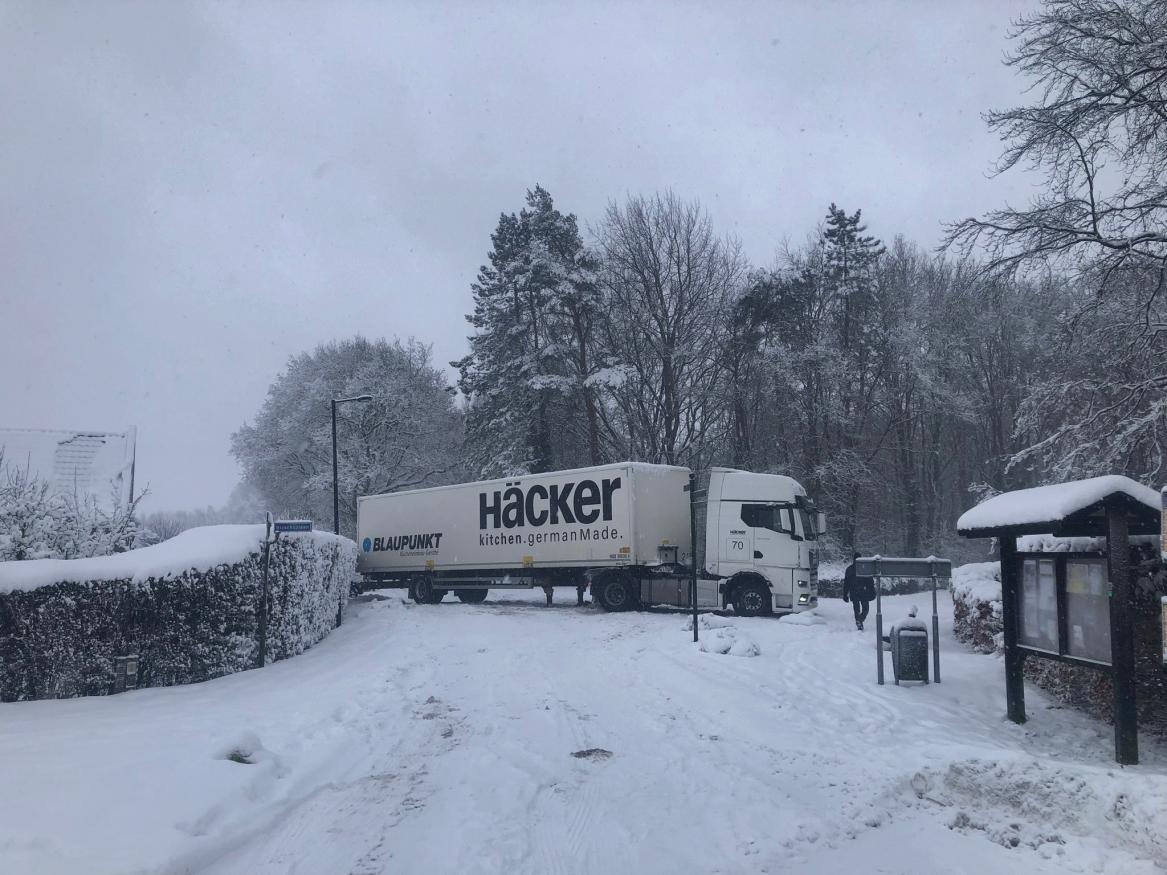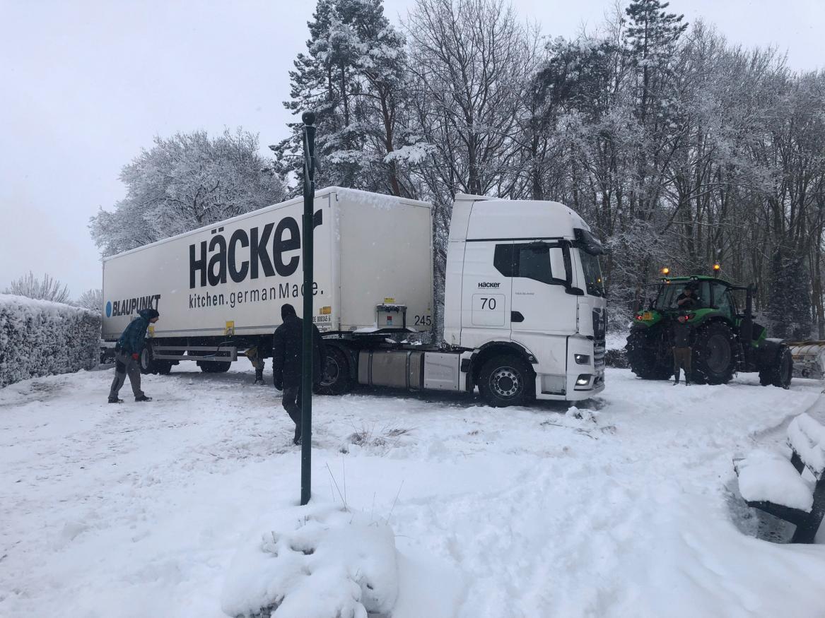 Een vrachtwagen met goederen voor het keukencentrum aan de Bisschoplaan kwam vast te zitten op de kruising met de Breedsingel.